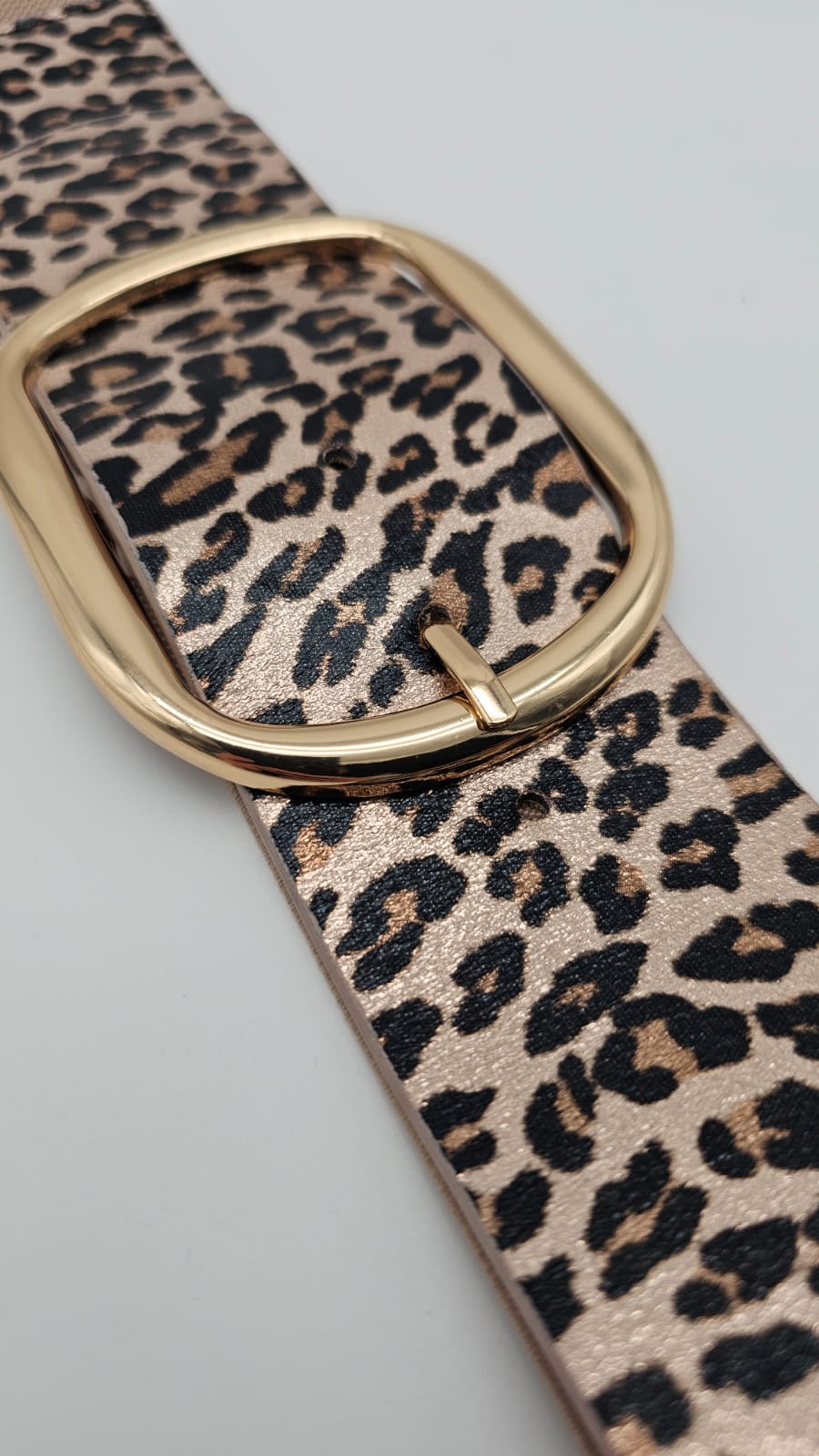 Ceinture Lolita - Taille élastique pour un ajustement parfait, aspect léopard scintillant pour un look élégant, boucle dorée pour une touche de glamour.