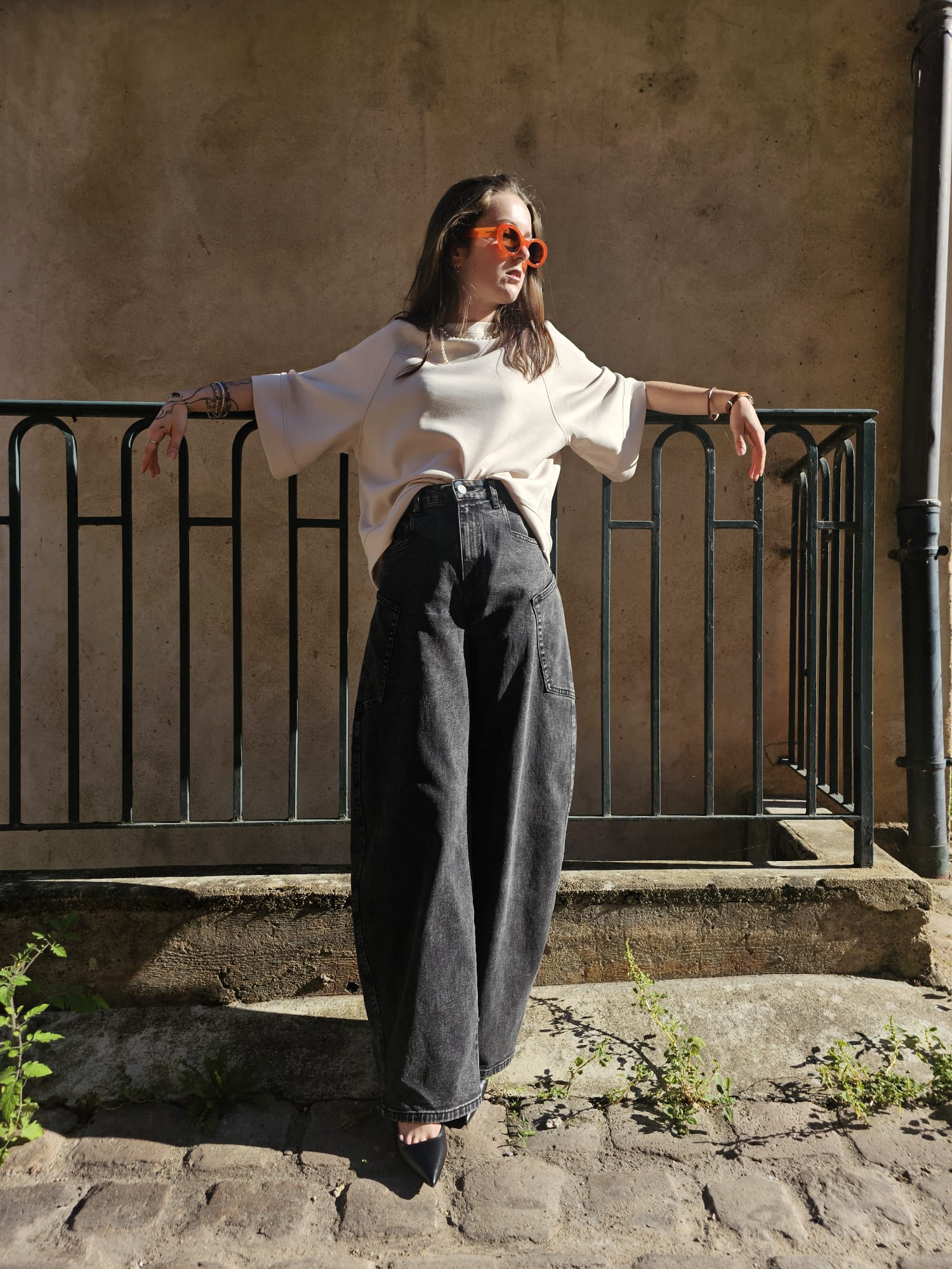 Jean noir délavé coupe ballon oversize