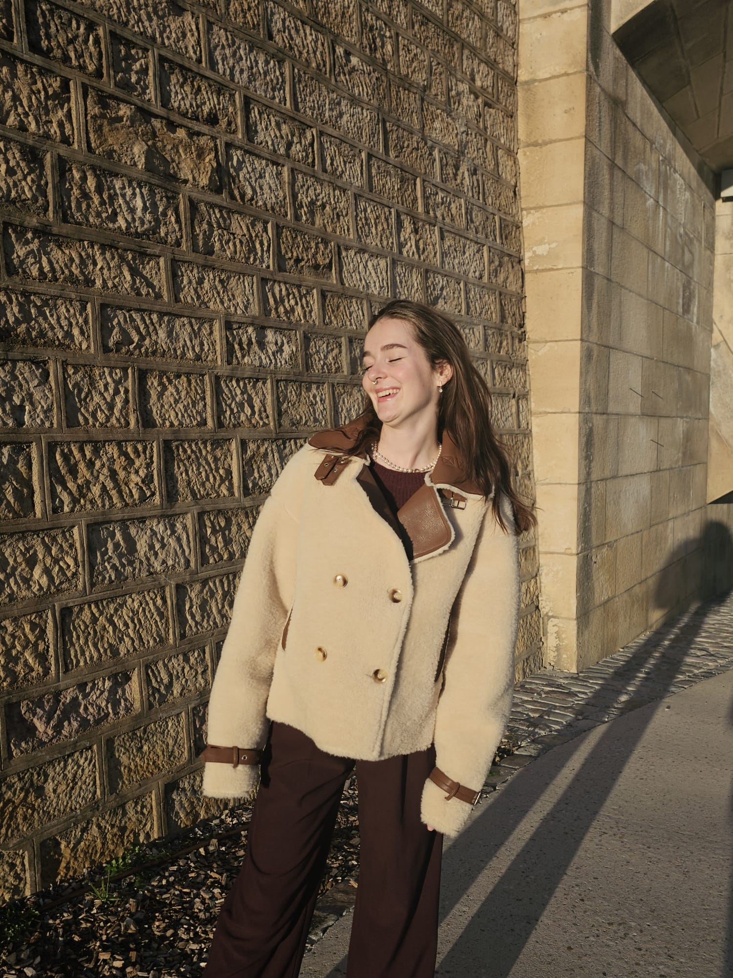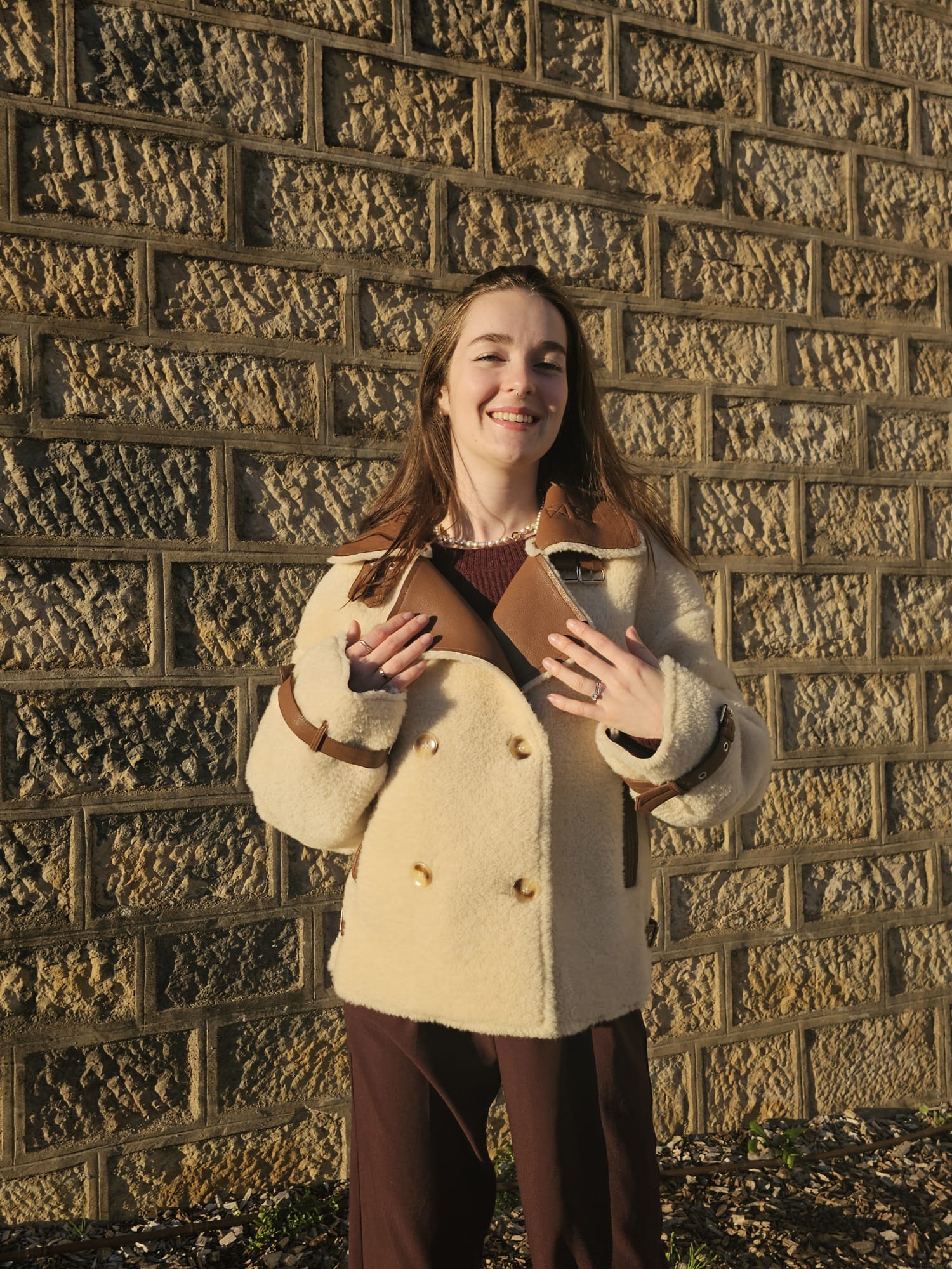 Veste moumoute en similicuir beige et camel